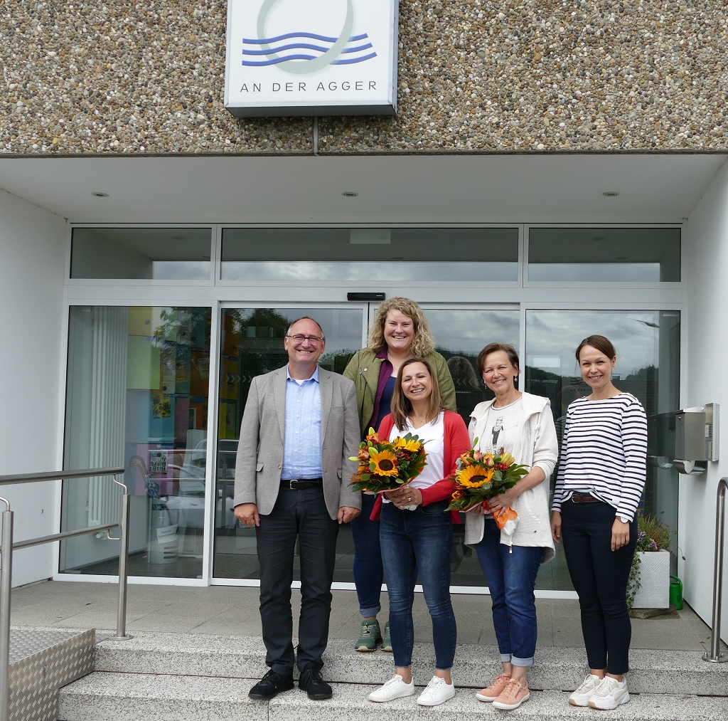 Blumen gab es am ersten Tag für zwei neue Mitarbeiterinnen des Kirchenkreises An der Agger