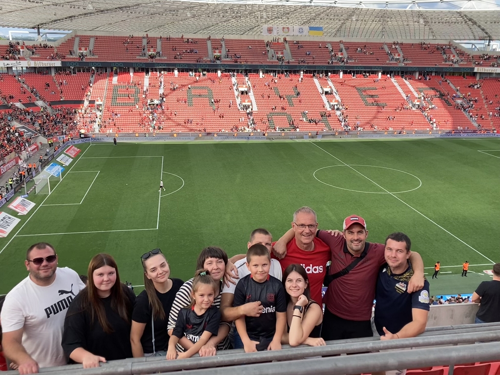 Neun ukrainische Geflüchtete erlebten ein Bundesligaspiel live im Stadion von Bayer Leverkusen
