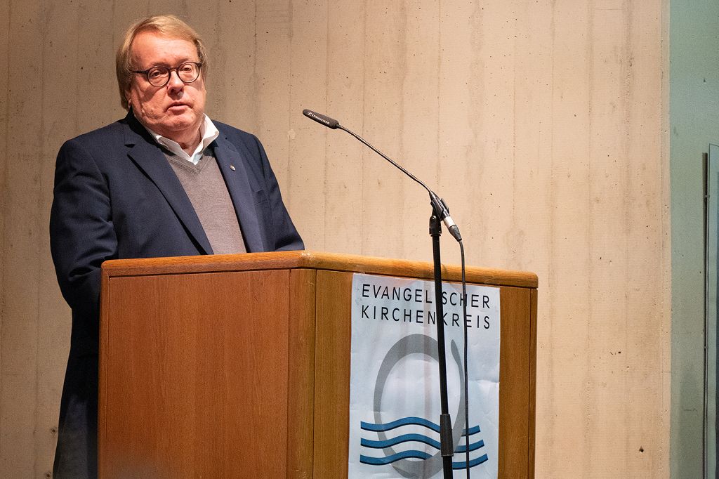 Im Superintendentenbericht sprach Michael Braun von "barbarischen Terrorakten". Der andauernde und furchtbare Krieg Russlands gegen die Ukraine und der Terror in Israel erschütterten "bis ins Mark" und machten deutlich, "wie unsicher unser Leben sein kann". Die Gesellschaft sei insgesamt in fast allen Bereichen erschüttert. "Das Schiff unserer Gesellschaft schwankt heftig." Viele Menschen seien verunsichert, es fehle an innerer Ruhe und Ausgeglichenheit und an etwas, das emotionale Sicherheit gebe. Die neue Umfrage der Evangelischen Kirche in Deutschland (EKD) zur Mitgliedschaft habe ergeben, dass in Deutschland nur noch zwölf Prozent aller Menschen überhaupt glauben. Michael Braun: "Das ist mehr als zu anderen Zeiten. Aber das ist wenig. Zeit für mehr Glauben? Streichen Sie mal das Fragezeichen."
