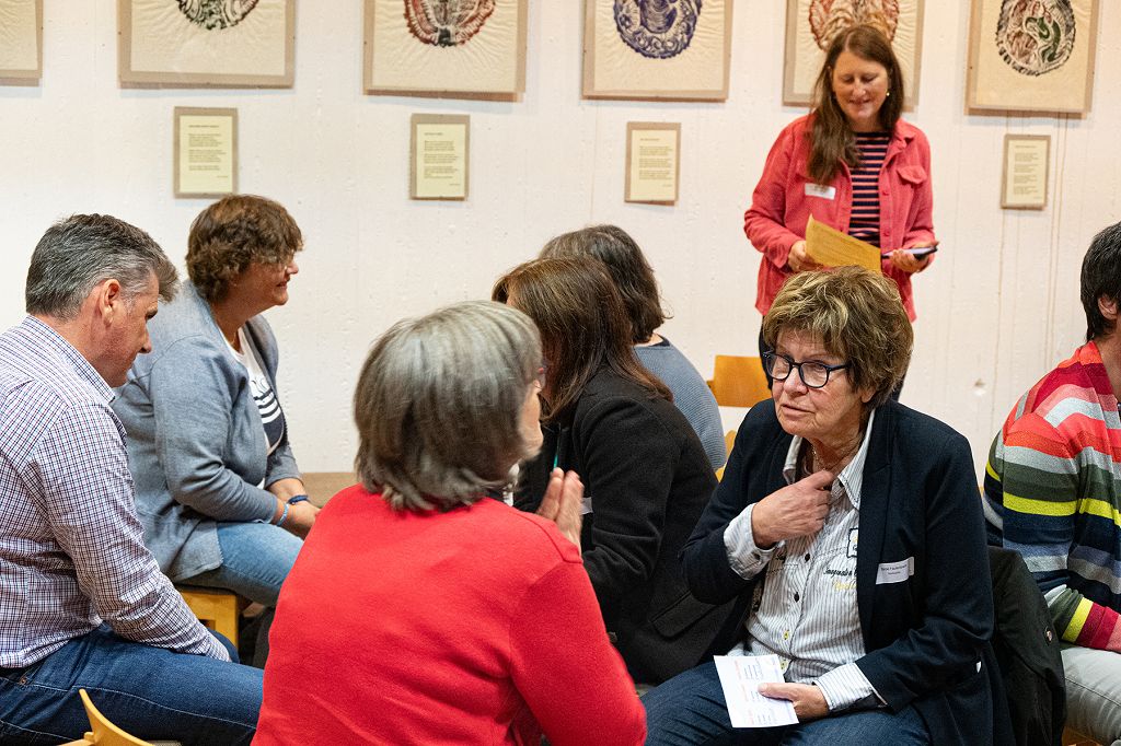 Am Freitagabend gab es beim Synodenthema "Mein Glaube - mein Leben - mein Gott" sehr persönliche Statements zum eigenen Glauben: Pfarrer Achim Schneider, Christine Adolphs, Eckhardt Lück und Pfarrer Andreas Spierling erzählten, wie sie zum Glauben gekommen sind und was er ihnen heute bedeutet. Dr. Oliver Cremer, neuer Assessor des Kirchenkreises An der Agger, führte durch das Thema "Mein Glauben - mein Leben - mein Gott." In acht Arbeitsgruppen gab es Zweiergespräche beim "Speeddating mit Gott": viele persönliche Geschichten und kniffelige Fragen wie "Welche Person fordert dich gerade am meisten zum Umdenken heraus?". Mein Glaube - mein Leben - mein Gott: Das persönliche Gespräch über Glaubensfragen auch mit Unbekannten war für manche Synodale ungewohnt, aber es lohnte sich.