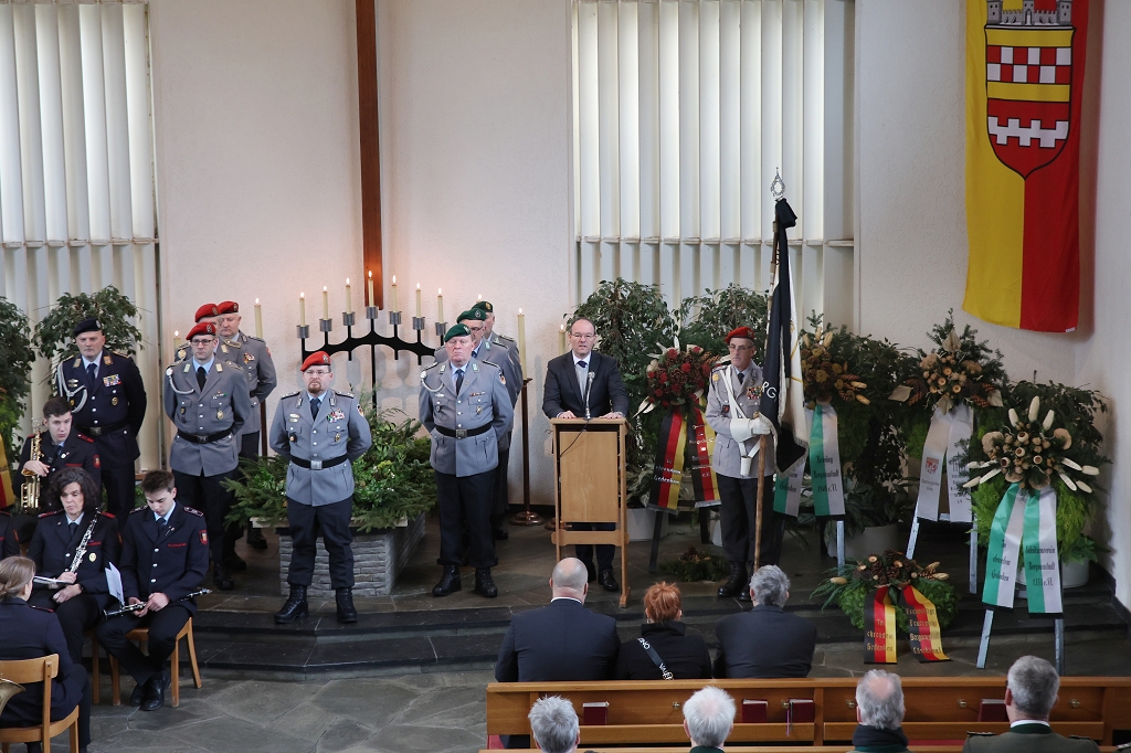 Bei der zentralen Gedenkfeier im Oberbergischen Kreis auf dem Zentralfriedhof in Bergneustadt wurde an die Opfer von Gewalt und Krieg, an Kinder, Frauen und Männer aller Völker gedacht. Das Gedenken galt den Opfer der Weltkriege ebenso wie den Opfern von Kriegen und Bürgerkriegen unserer Tage. Gedacht wurde auch an die Opfer von Terrorismus und Extremismus, Antisemitismus und Rassismus.