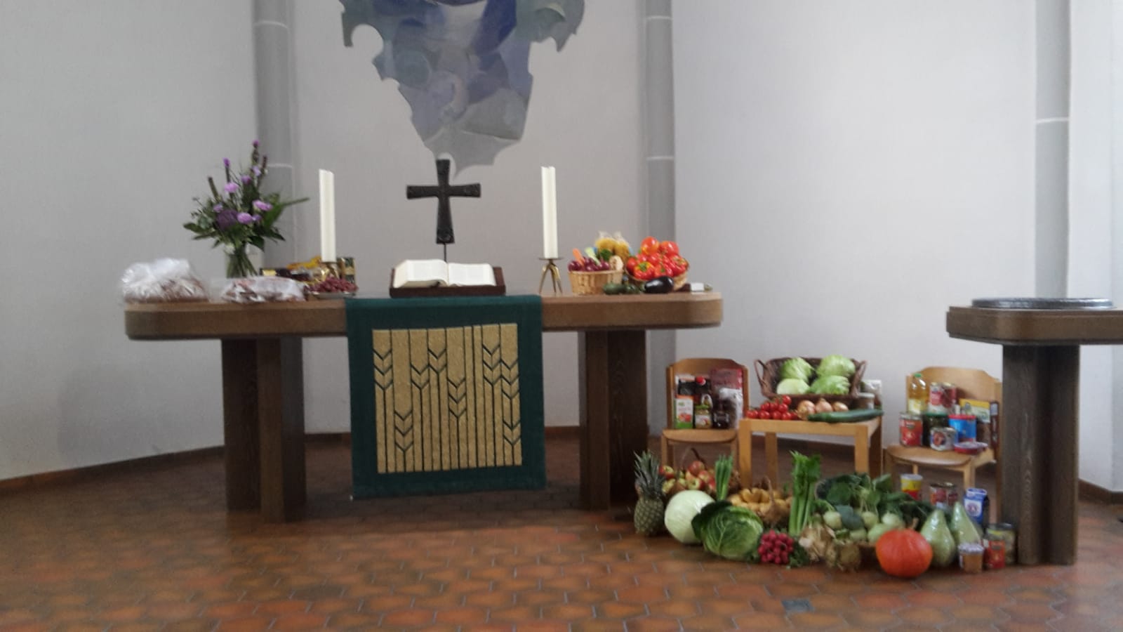 An Erntedank werden in den Kirchengemeinden die Altäre mit Feldfrüchten geschmückt. Mit der Bitte des Vaterunsers - „Unser tägliches Brot gib uns heute“ - wird zugleich an die Ernährungssituation in den ärmsten Ländern der Erde erinnert. Im christlichen Verständnis gehören das Danken und Teilen zusammen. Erntedank-Gottesdienste sind daher oft mit einer Solidaritätsaktion zugunsten notleidender Menschen verbunden. So sammeln viele Kirchengemeinde für die oberbergischen Tafeln. Wiehl am Sonntag für die Tafel Oberberg Süd.