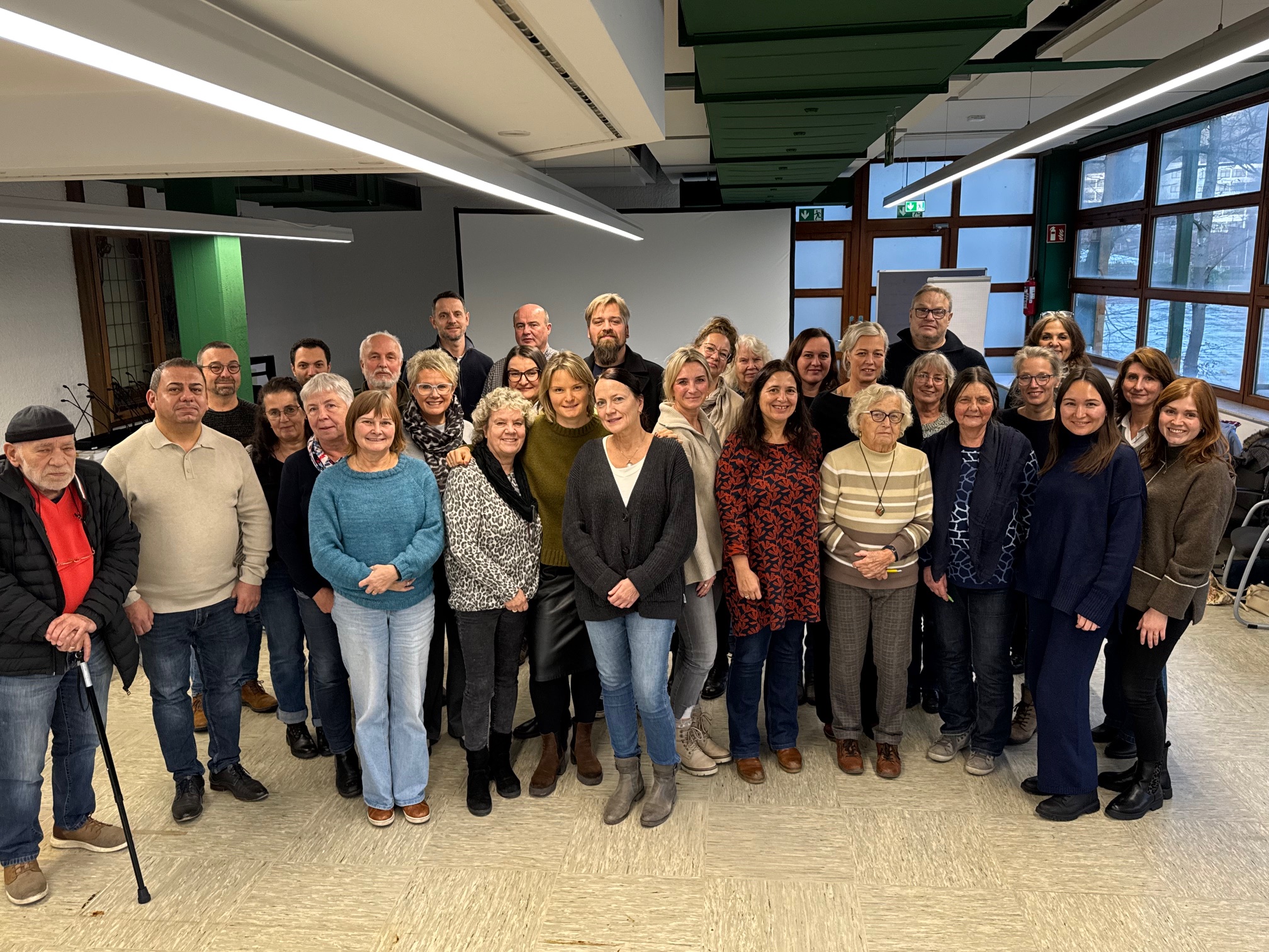 Die Veranstaltung im ehemaligen Kantinengebäude des Kreishauses war sehr schnell ausgebucht: Fast 40 Menschen aus verschiedenen Kommunen nahmen teil, darunter die Flüchtlingshilfe Drespe, Integrationsfachkräfte aus Engelskirchen und Lindlar, Mitarbeitende aus Kindergärten, Case Manager im Rahmen des Kommunalen Integrationsmanagements (KIM), Mitarbeitende des Jobcenters Oberberg, des Kreisjugendamts und des Vereins für Soziale Bildung (VSB).