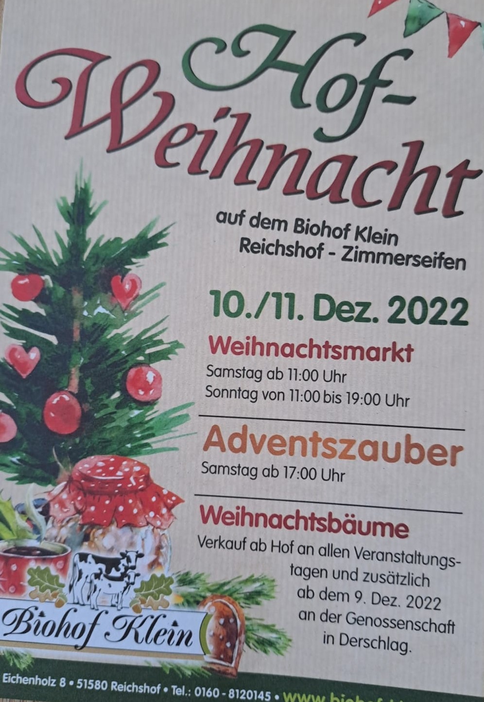 auf dem Biohof Klein in Reichshof-Zimmerseifen am Samstag und Sonntag, 10. und 11. Dezember 2022
