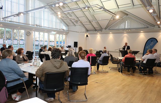 Landrat Klaus Grootens würdigte in seiner Festrede die Bedeutung der Ehrenamts-Akademie Oberberg, die das Ehrenamt als unverzichtbaren Bestandteil des gesellschaftlichen Lebens durch Beratung, Fortbildung und Vernetzung unterstützt und Kompetenzen stärkt, die dem Gemeinwohl zu Gute kommen. Er appellierte an die Teilnehmenden der Jubiläumsveranstaltung für die Angebote der Ehrenamts-Akademie zu werben, die kostenfrei konkrete Hilfen und Informationen geben. Dabei bedankte sich der Landrat einmal mehr "bei den vielen ehrenamtlich Aktiven im Oberbergischen Kreis, die sich mit durchschnittlich je 190 Arbeitsstunden im Jahr unentgeltlich für die Gesellschaft einbringen!" Auch der Landrat nutzte dieses Austauschtreffen, um sich in einem Workshop für die weitere Entwicklung der Ehrenamts-Akademie Oberberg einzubringen.