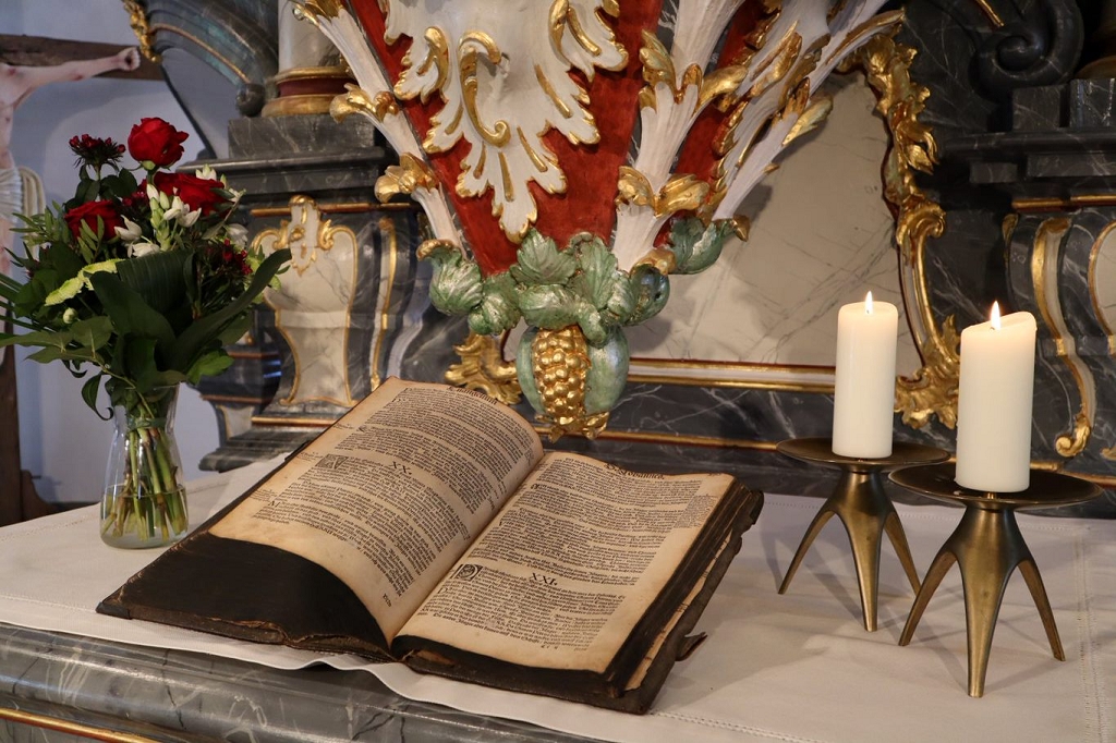 Die Lesung im Gottesdienst erfolgte aus der ältesten Gemeindebibel von