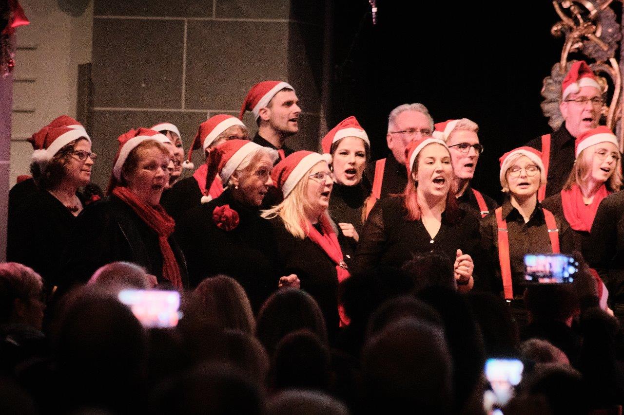 Das Konzert, das im Rahmen des Weihnachtsmarktes der Kirchengemeinde stattfand, fand so viele interessierte Zuhörer, dass die Kirche bis auf den letzten Platz – auch Stehplatz - gefüllt war. Geboten wurde ein abwechslungsreiches Konzert mit stimmungsvollen Lichtarrangements und Projektion auf zwei Videoleinwände, so dass auch in den Seitenschiffen das Konzert visuell gut verfolgt werden konnte.