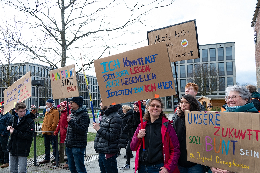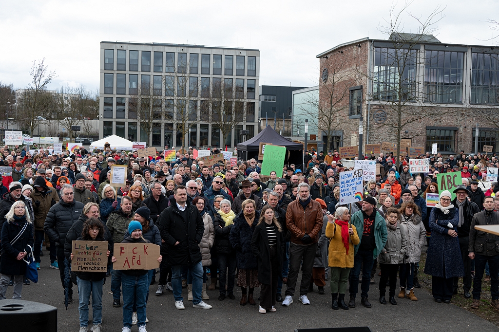 Ein sichtbares Zeichen für eine weltoffene und demokratische Gesellschaft setzten die rund 600 Menschen, die am Sonntagnachmittag zur Demonstration „Nie wieder ist jetzt“ auf das Steinmüllergelände kamen. Die überparteiliche und überkonfessionelle Kundgebung "Demokratie, Vielfalt, Freiheit und Zusammenhalt verteidigen" wurde getragen von einem breiten Bündnis aus Vereinen, Parteien, Kirchen und Organisationen.