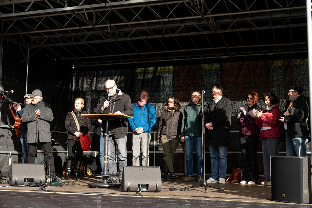 „Freiheit!“ rief Frank-Erik Müller den Demonstrierenden mahnend zu: Meinungsfreiheit, Informationsfreiheit und Pressefreiheit und die Freiheit des Einzelnen – dafür sei er dankbar. Freiheit zur aktiven Gestaltung der Gesellschaft bedeute, FÜR etwas einzustehen.
