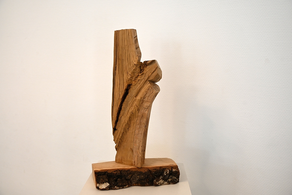Seine Engel sind alle aus heimischen Hölzern und zeigen eine gewisse Rauigkeit, eine ungeschminkte Natürlichkeit, die in dem gespaltenen Holz zum Ausdruck kommt. „Die Engel mit gehobenen Flügeln erzählen von Begleitung und Nähe, von Hoffnung und Halt auf leichten und schweren Wegen.“