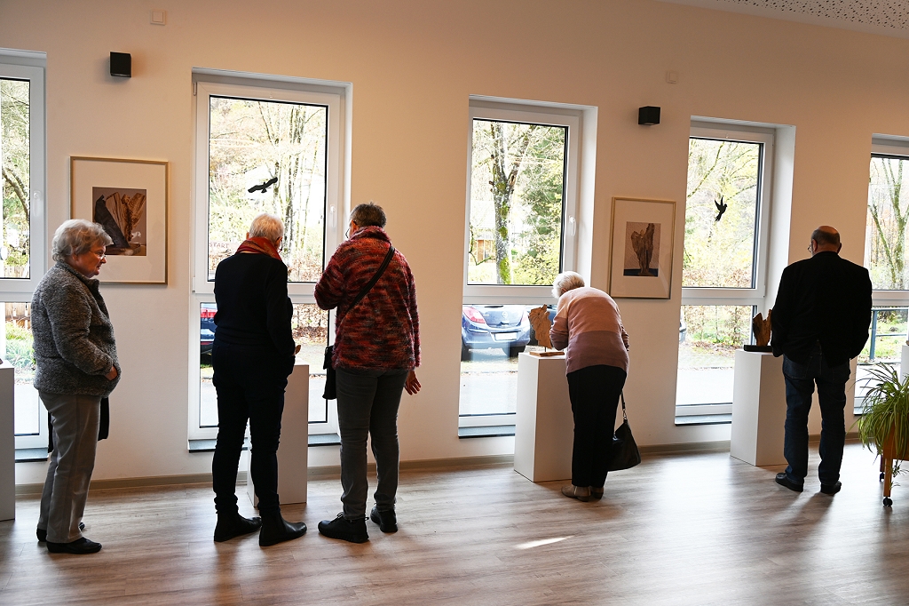 „Engel unter uns“ auch im Gemeindehaus der evangelischen Kirchengemeinde Holpe. Die dort gezeigten Engelskulpturen stammen ebenfalls von Uwe Wintersohl. Er ist Allgemeinmediziner, Palliativarzt und Künstler, der seit etwa 2006 bewusst dem Thema Engel in der Literatur und Kunst nachgegangen ist. Die an diesem Sonntag eröffnete Ausstellung ist noch bis zum 17. Dezember zu sehen und montags während des Wochenmarktes (10:30 bis 13 Uhr) und alternativ nach Vereinbarung über Küsterin Karina Sternberg und Pfarrerin Anja Karthäuser zu besichtigen.