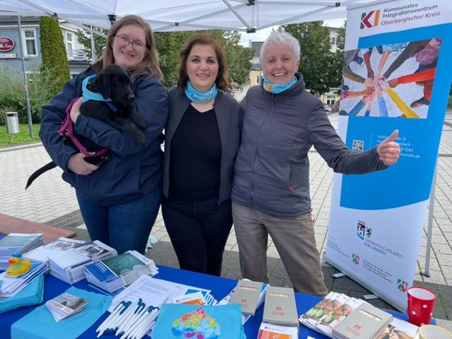 In Bergneustadt machten Belma Hadžerić, Leiterin der Flüchtlingsberatungsstelle des Kirchenkreises An der Agger sowie Sarah Krämer und Sigrid Ritzmann-Striss vom Kommunalen Integrationszentrum Werbung für die kreisweite Aktion "Oberberg bewegt sich".