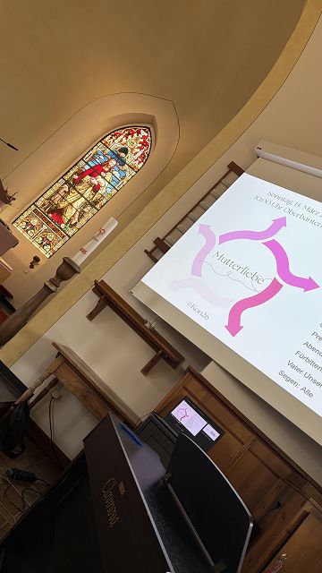 Das Medien-Team, (Angelina und Emily) hat eine Powerpoint-Präsentation erarbeitet sowie die Gottesdienst-Kachel, die man in allen Sozialen Medien teilen kann. Der Gottesdienst-Teaser trägt den Titel „Mutterliebe“. Die Mutterliebe ist in einen Kreislauf eingebettet, weil ja das Tagesevangelium vom Sterben und Werden spricht: Jesus – das Weizenkorn, das sterben muss.