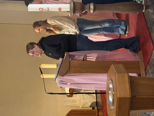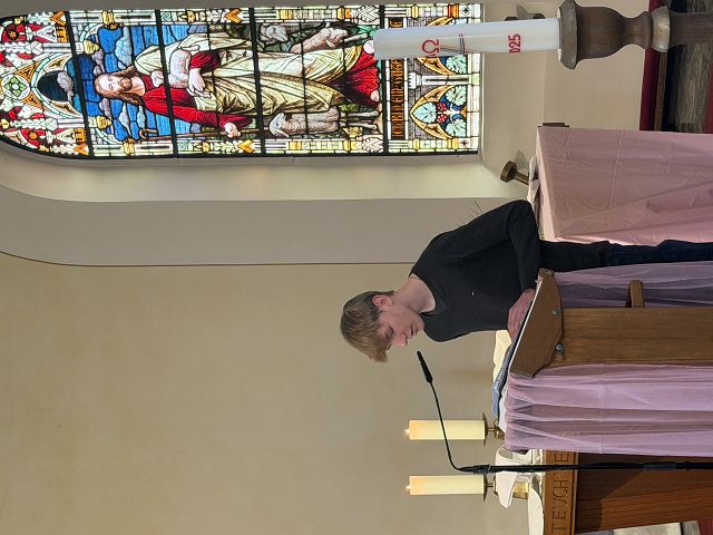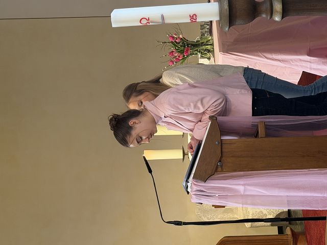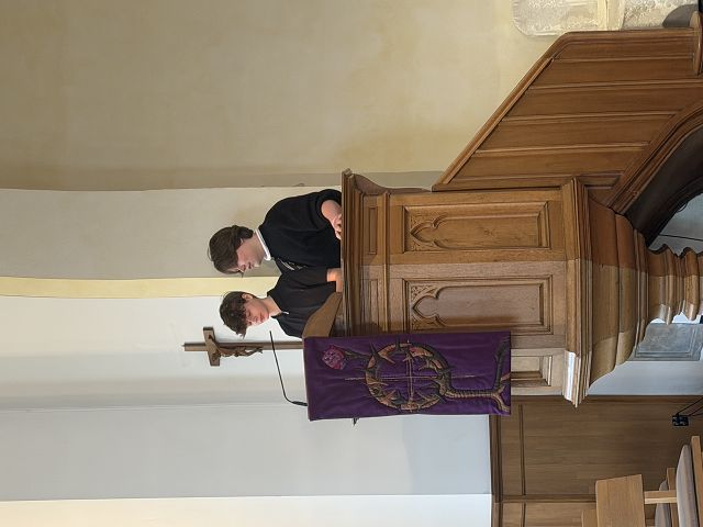 Moritz und Yorik verbeugen sich vor dem Altar. Moritz nimmt die Altarbibel, liest den Text und geht dann hinauf auf die Kanzel. Die Predigt teilen sie sich zu zweit. Die KON26 haben sich den Lätare-Texten mutig gestellt. Sie haben verstanden, dass es für jeden Sonntag Texte gibt, die sich nur alle sieben Jahre wiederholen und die Chance genutzt. In der Predigt, an der die Gemeindepfarrerin Silke Molnár rein gar nichts verändert hat, bringen sie Gott als liebende Mutter mit den Unwägbarkeiten des Lebens und dem Sterbenmüssen zusammen. Sie halten – aller deutlichen Schwierigkeiten auf der Welt zum Trotze – an dem Gedanken fest, dass mit Gottes Liebe letztlich alles überwunden werden kann, was Menschen daran hindert zu lieben. Gottes Wirken wird mit dem Butterfly-Effekt erklärt. Wow!