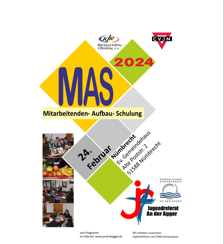 MAS 2024: Samstag, 24. Februar 2024, 8.50 bis 17 Uhr im Ev. Gemeindehaus Nümbrecht (Alte Poststraße 2,