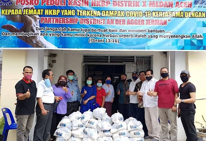 Nach Beginn der Corona Pandemie hatte der Kirchenkreis aus Eigenmitteln und Spenden 87.265,65 Euro an die beiden indonesischen Partnerkirchenkreise Medan Aceh und Dairi überwiesen. Davon wurden Lebensmittelpakete gepackt, die je für eine Woche und eine Familie reichten. Sunggul Sirait hatte persönlich an der Verteilung der Lebensmittelpakete mitgewirkt.