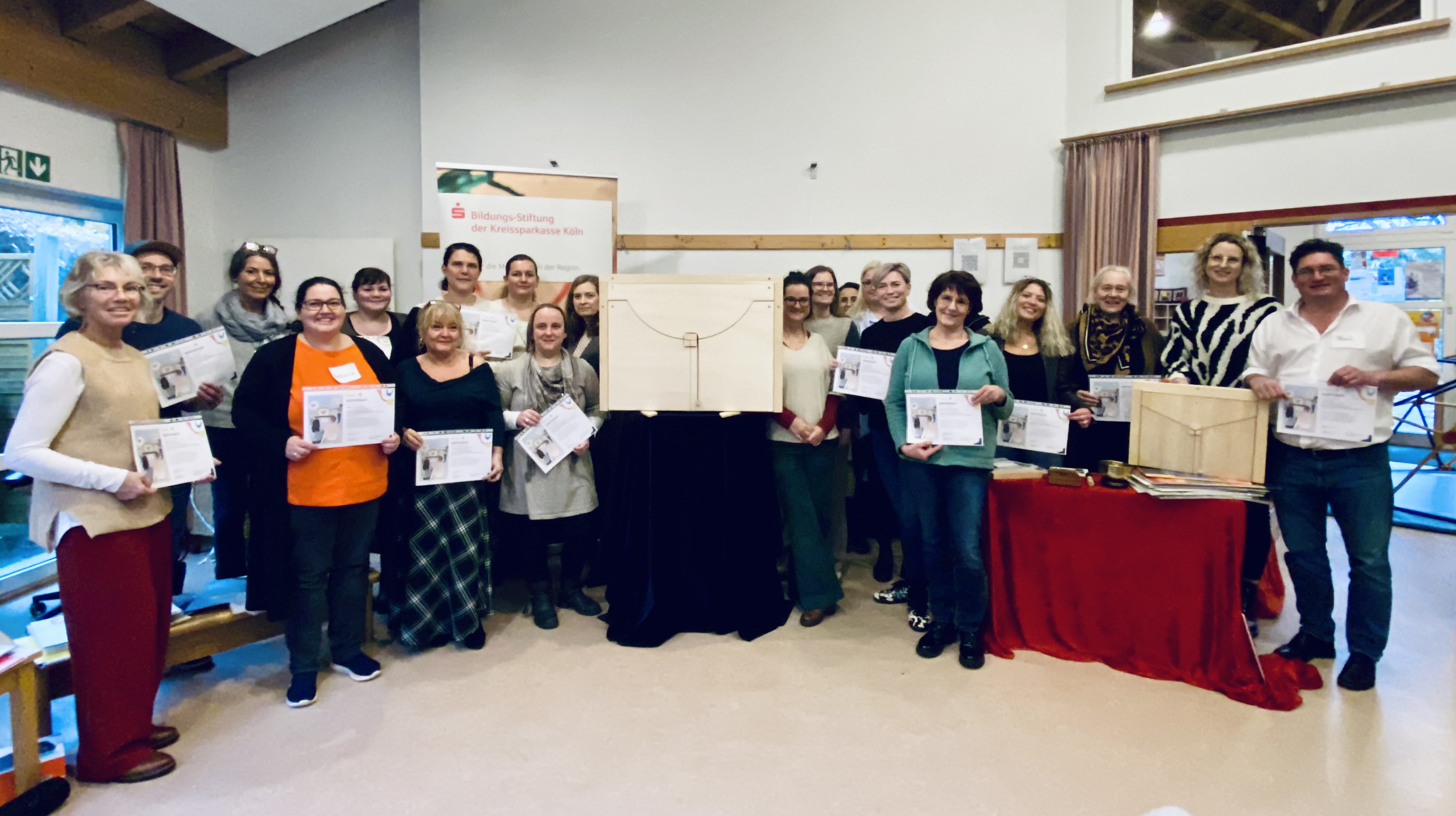 Das Erzählmedium macht es den Kindern möglich, sich die fokussieren und zu konzentrieren. Daran kann in der (Sprach-)Bildungsarbeit effektiv angeknüpft werden. Wir sind froh und dankbar, diese Inhalte nun auch im Dresper Kindergarten mit noch mehr theoretischem Fachwissen zur Umsetzung zu bringen. Alle Teilnehmer erhielten am Ende des Tages ein Zertifikat und zudem einen eigenen Kamishibai-Holzrahmen."