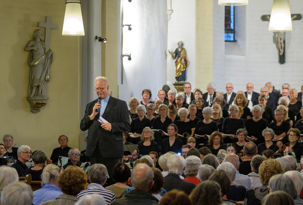 Michael Braun, Superintendent des Kirchenkreises An der Agger, führte zu Beginn des Abends in St. Stephanus in die Komposition ein. Er erinnerte an den Entstehungsprozess der „Schöpfung“ als eine Zeit, in der Joseph Haydn sich als besonders glaubensstark empfunden habe. „Die Komposition des Oratoriums war ein zutiefst religiöses Geschehen“, erläuterte der Superintendent. Entstanden ist das Werk zwischen 1796 und 1798 als drittes von vier Oratorien des österreichischen Komponisten. Wie Michael Braun ausführte, ließ Haydn sich durch die Oratorien Georg Friedrich Händels zu seiner „Schöpfung“ inspirieren, die heute immer noch weltweit, auch mit englischem Text, aufgeführt wird.