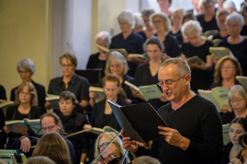 Nachdem Annemarie Sirrenberg den ersten Teil geleitet hatte, reihte sie sich in die Reihen des Chors ein und überließ Doo-Jin Park das Dirigat.