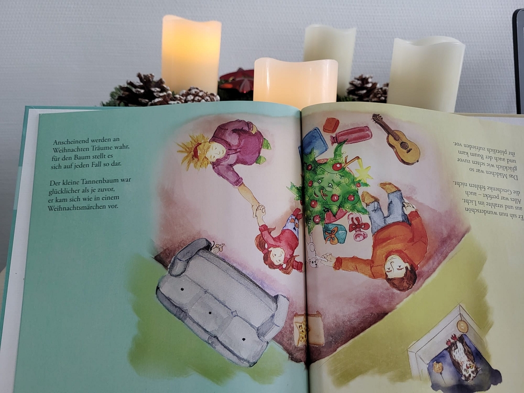 Als ich mich dazu entschied, daraus ein Kinderbuch zu machen, habe ich lange überlegt, aus welcher Perspektive man das am besten schreibt. Ich konnte mich nicht entscheiden. Ich fand die Idee aus Sicht des Tannenbaums zu schreiben schöner - und, ehrlich gesagt, gefällt mir die Geschichte bis heute besser.