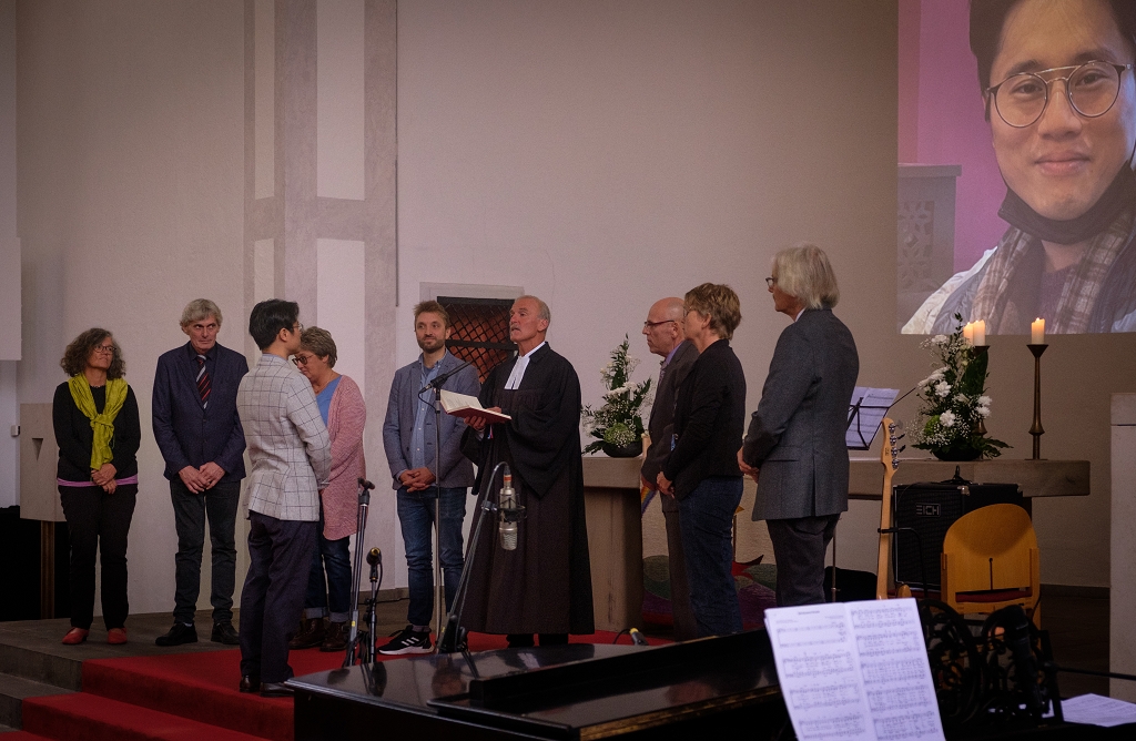 Außerdem stellte er sich im Gottesdienst den Interviewfragen Jochen Grans mit viel Humor. Doo-Jin Park ist Nachfolger von Kantor Pascal Salzmann, der nach Mönchengladbach-Rheydt wechselte. Park wurde 1983 in Südkorea geboren, er gab im Gespräch einen kleinen Einblick in seine Heimat und ihre Kultur. So erzählte er, in südkoreanischen Kirchengemeinden sei die Liturgie weniger starr, dafür gebe es eine Menge Musik: „Unsere Gottesdienste in meiner Heimatstadt Busa werden oft von Bands mitgestaltet.“