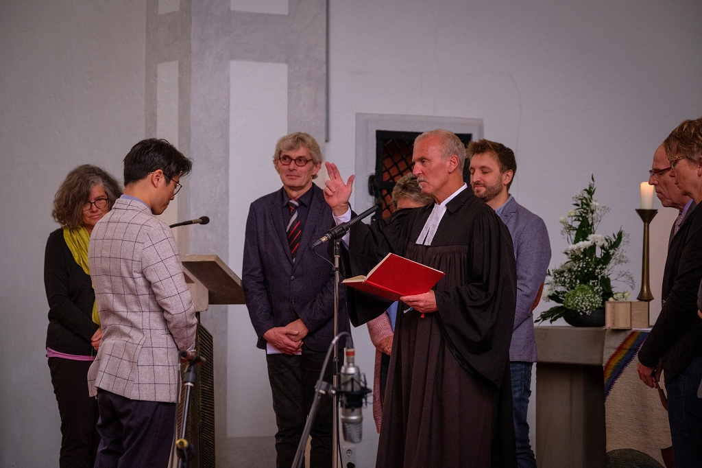 Die Einführung mit den Segensvoten zeigte in ihrer Herzlichkeit, dass Doo-Jin Park schon jetzt ein Teil der Waldbröler Kirchengemeinde ist. Das von Pfarrer Gran vorgelesene Grußwort der Kreiskantorin, Dr. Annemarie Sirrenberg, bescheinigte dem Kirchenmusiker „beneidenswerte Virtuosität in der Improvisation.“ Sie freue sich darüber, dass der neue Kantor ein Faible für das Komponieren habe und wünschte ihm: „Genieße die wunderbaren Klangfarben der Waldbröler Orgel.“ Grüße kamen schriftlich auch von Pascal Salzmann, der damit schloss, dass er sich schon auf ein persönliches Kennenlernen freue.