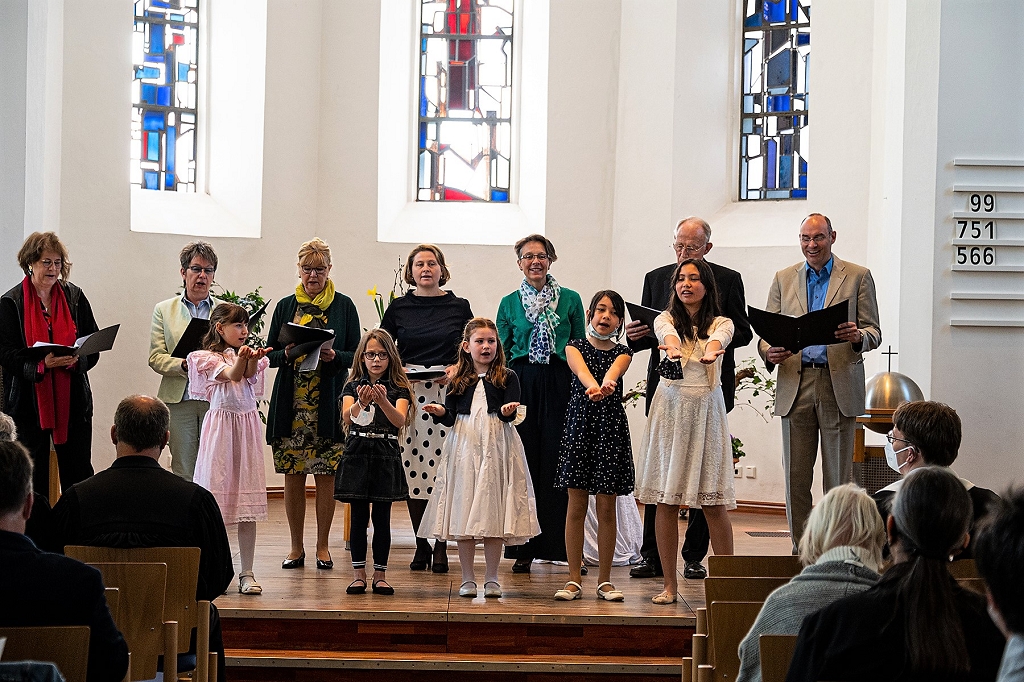 Die fröhliche Musik passte zum begeisternden Gottesdienst: So begüßten der „Chor Canticum“ und die „Praise Kids“ unter der Leitung von Popkantorin Christine Fischer die Gottesdienstgemeinde mit dem Lied "Morgenstern" - passend zur Ordination und passend zu Ostern.