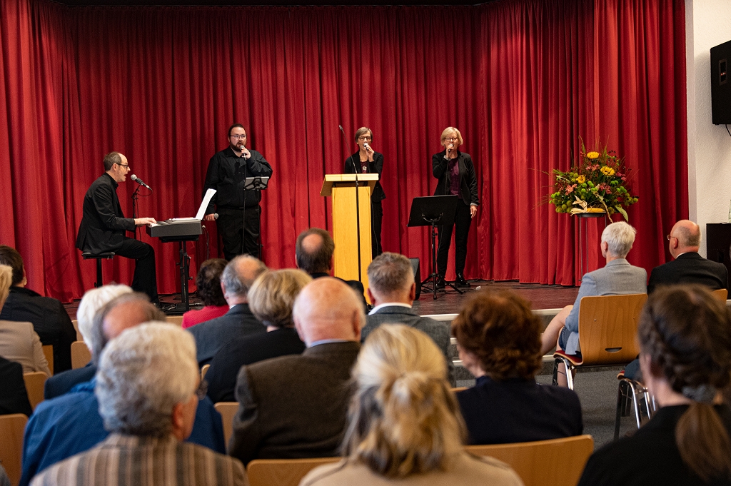 Kantor Michael Müller-Ebbinghaus ließ die Orgel swingen mit einem Swing-Preludium zu „Ich lobe meinen Gott, der aus der Tiefe mich holt“. Zum Empfang präsentierte er mit drei Sänger*innen Gospelstücke im Gemeindehaus. Dort wurde Michael Striss mit seiner Frau Sigrid herzlich begrüßt, und es gab Grußworte vom stellvertretenden Bürgermeister Udo Kolpe, dem CVJM-Vorstand, der Diakonie und weiteren Gästen.