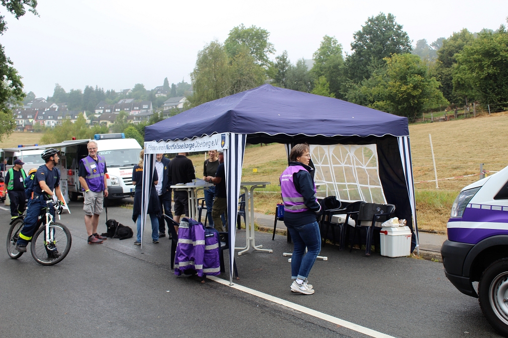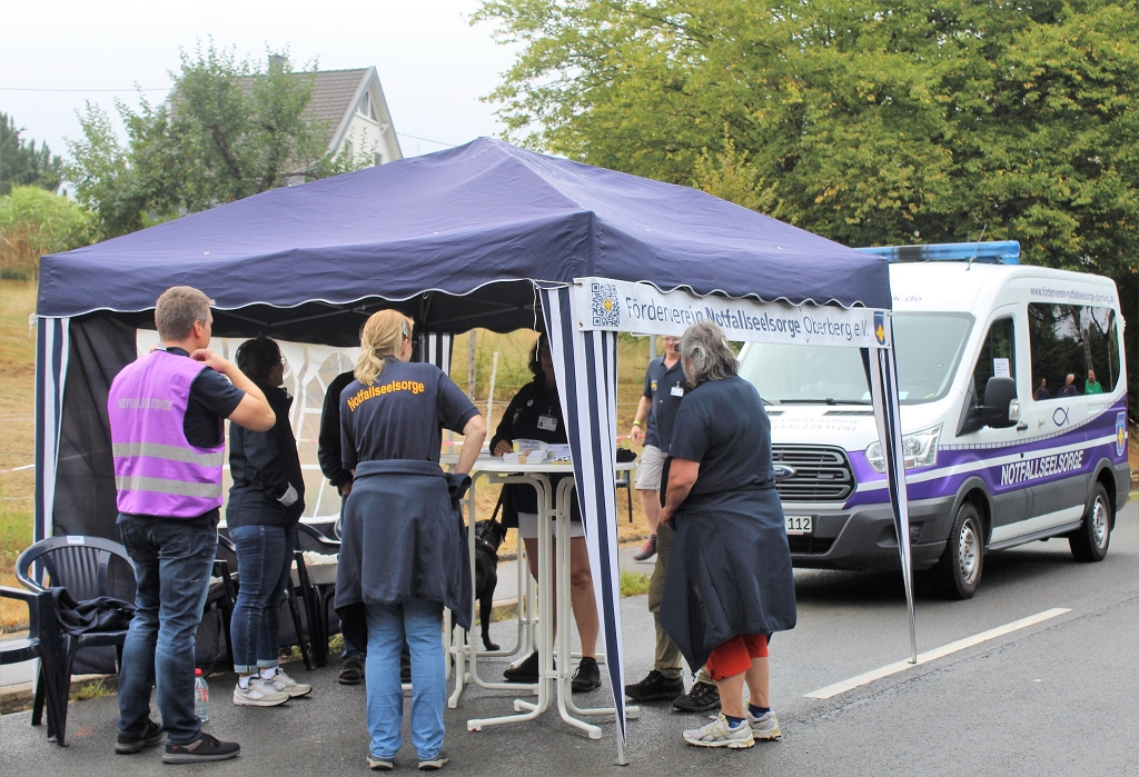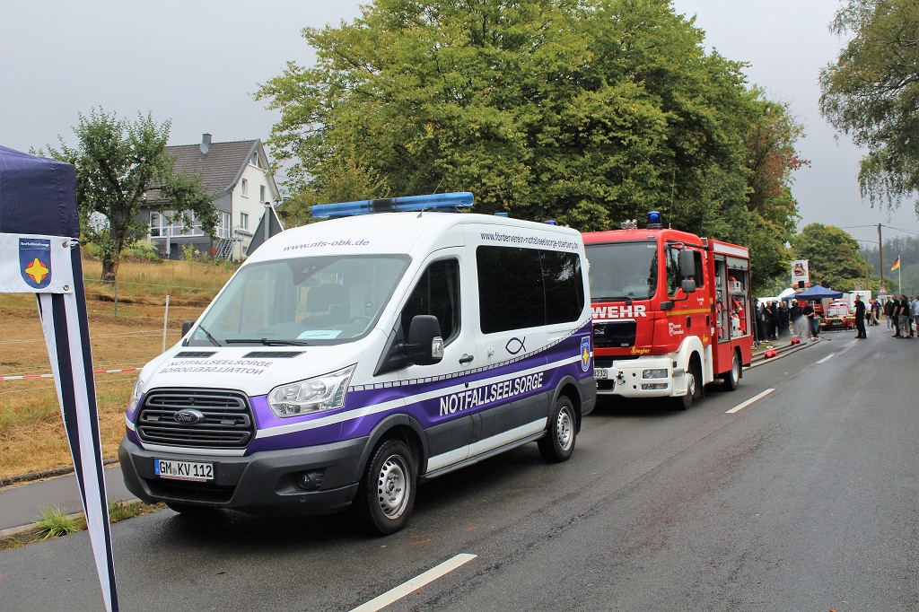Der Förderverein der Ökumenischen Notfallseelsorge Oberberg hat am Samstag an der Blaulichtmeile des Oberbergischen Kreises teilgenommen. Die Notfallseelsorge ist ein gemeinsames Angebot der evangelischen und der katholischen Kirche im Oberbergischen Kreis zur Unterstützung von Feuerwehr, Rettungsdienst und Polizei. Notfallseelsorger begleiten die Rettungsdienste bei ihren Einsätzen.