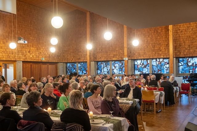 Wie gut diese muslimische Sicht zur christlichen Auffassung des Fastens passt, wird deutlich, als Vikarin Dr. Judith Fresen ihren Impulsvortrag hält. Sie spricht davon, wie bewusster Verzicht Raum schaffen kann für Gott: „Wir spüren: Gott schenkt nicht nur Brot, sondern auch Wort, Nähe und Barmherzigkeit. Wir suchen beim gemeinsamen Mahl den Frieden in der Begegnung. Was wir hier heute gemeinsam tun, ist aber leider gerade weltweit eher die Ausnahme.“ Auch Enes Günes vom Kölner Verein „Verband engagierte Zivilgesellschaft in NRW“ betont: „In der Begegnung steckt große Kraft. Demokratie ist nicht nur Politik, sondern beginnt mit Menschen, die sich voller Respekt zuhören. Vertrauen entsteht, wenn man Zeit und Essen teilt.“