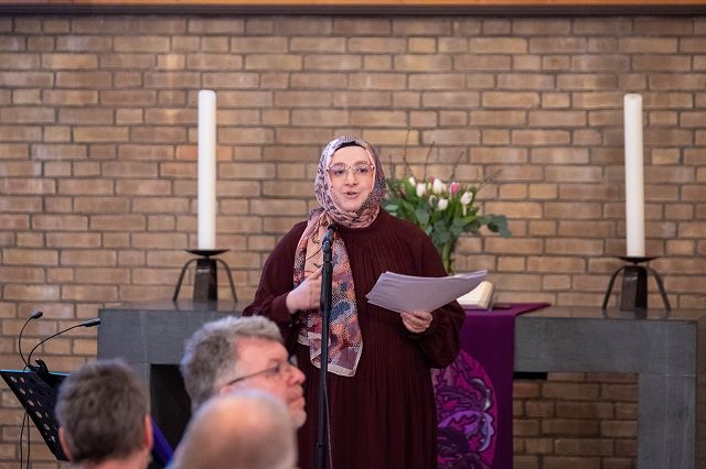 Inci Özmen berichtet, die christlichen Gäste würden im Wesentlichen zwei Fragen stellen: Warum fastet ihr? Und warum tragt ihr als Frauen das Kopftuch? „Auf beide Fragen kann ich antworten, dass wir auf diesem Weg Gottes Nähe suchen.“ Esra Hamidullin, die als Moderatorin durch den Abend führt, ergänzt: „Im Fasten werden wir uns unserer Schwäche bewusst. Wir erleben Hunger – für so viele Menschen auf der Welt ist das Alltag. Das wird uns in dieser Zeit deutlich.“ Und Rabia Karataş erläutert: „Wenn ich mein Kopftuch trage, zeige ich, dass ich mich nicht über mein Äußeres definieren lassen möchte.“
