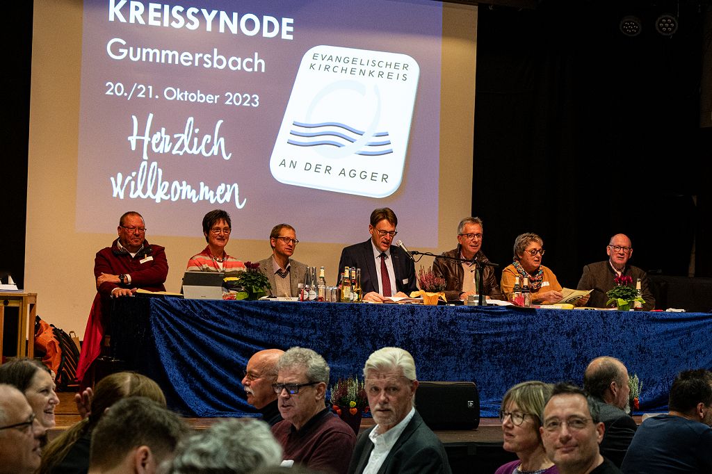 Nach Grußworten von Kreisdechant Christoph Bersch, dem stellvertretenden Gummersbacher Bürgermeister Jürgen Marquart und Pastor Stefan Hofmann von der Freien Evangelischen Gemeinde (FeG) Gummersbach gab es zum Synodenthema "Mein Glaube - mein Leben - mein Gott" sehr persönliche Statements zum eigenen Glauben: Pfarrer Achim Schneider, Christine Adolphs, Eckhardt Lück und Pfarrer Andreas Spierling erzählten, wie sie zum Glauben gekommen sind und was er ihnen heute bedeutet. Dr. Oliver Cremer, neuer Assessor des Kirchenkreises An der Agger, führte durch das Thema "Mein Glauben - mein Leben - mein Gott."