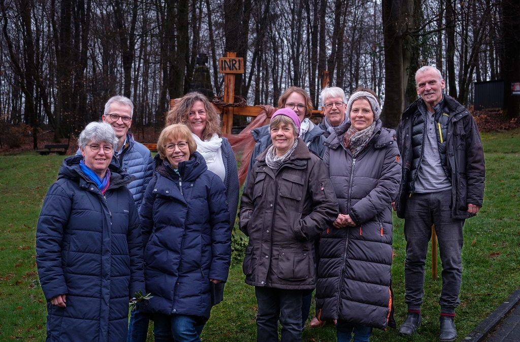 Eigentlich war ein Waldgottesdienst an der Station der Auferstehung Christi am Hermesdorfer Ostergartenweg geplant gewesen. Doch weil Regen dem Organisationsteam einen Strich durch die Planung machte, trafen sich die Gottesdienstbesucherinnen und -besucher stattdessen in der Friedhofshalle. Jochen Bellingen, Vorsitzender des Missionsvereins Hermesdorf und Mitglied des dortigen CVJM, der den Ostergarten realisiert, empfindet diese Änderung als gute Alternative. „Die Friedhofshalle, sonst ein Ort der Trauer, wird so zu einem Raum der Hoffnung auf die Auferstehung.“