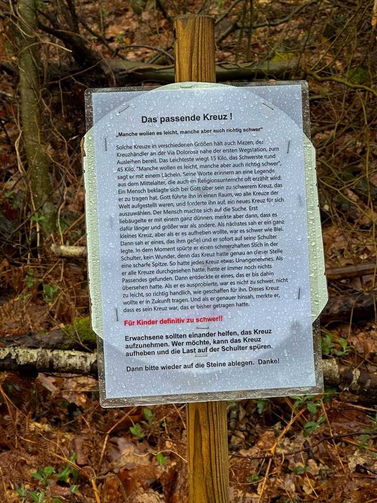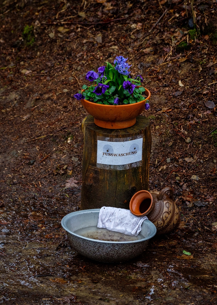 Er knüpft eine Verbindung zum Ostergartenweg, der auch in diesem Jahr in acht Stationen Jesu Weg nachzeichnet, indem er sagt: „Wir gehen hier mit Jesus, beschreiten auf diese Weise den Weg des Menschseins. Wir alle finden uns doch irgendwann einmal in Gethsemane wieder, weil wir Momente voller Sorge und Angst haben.“